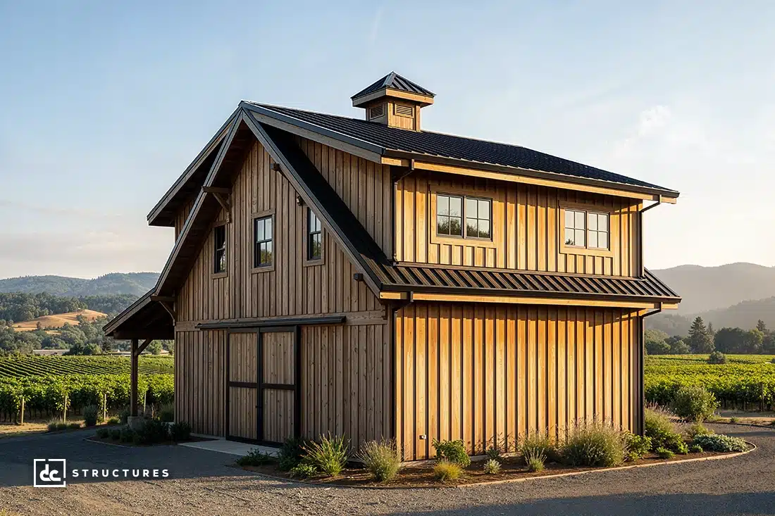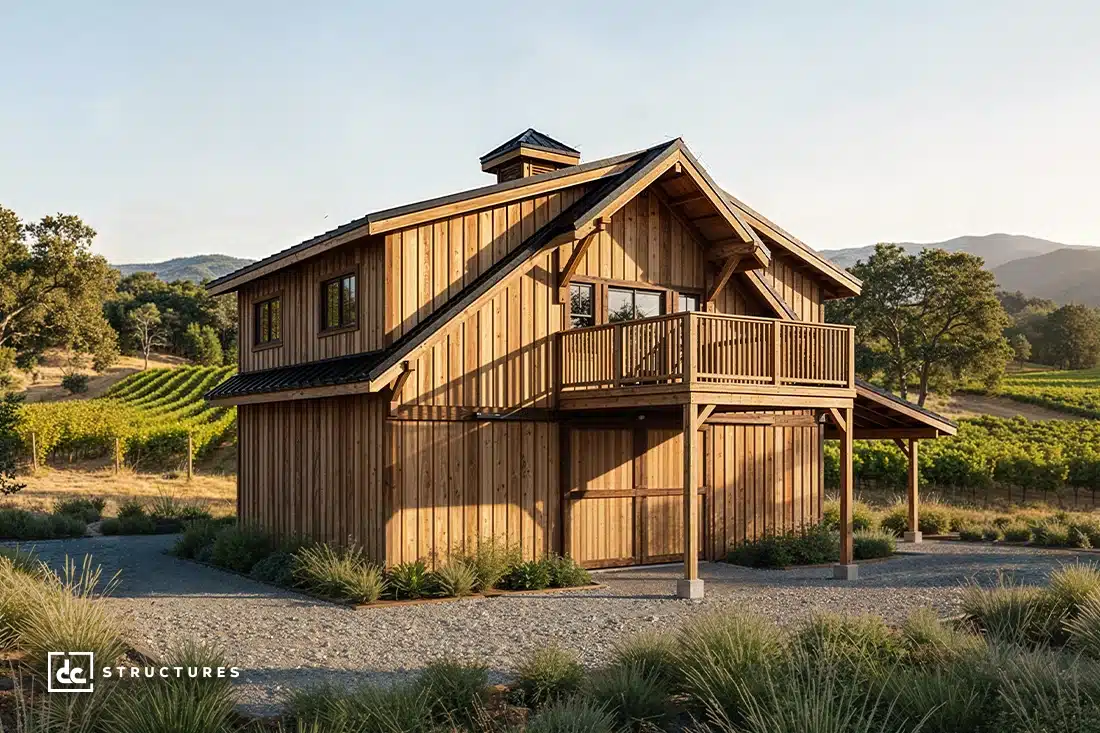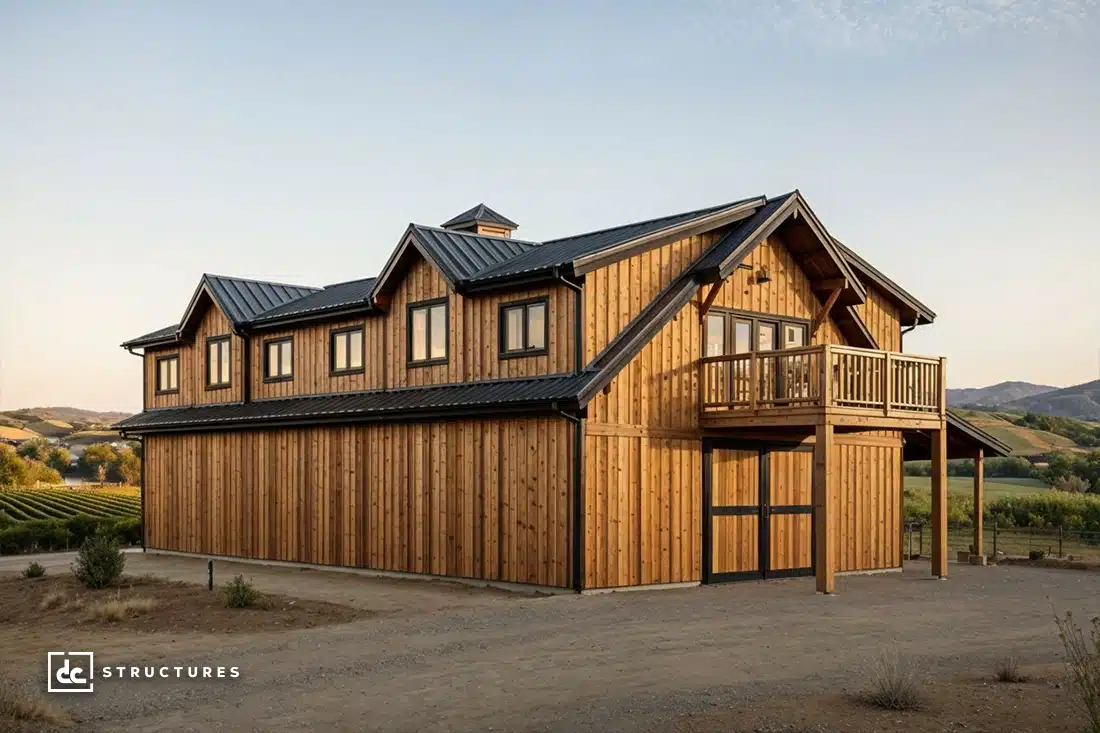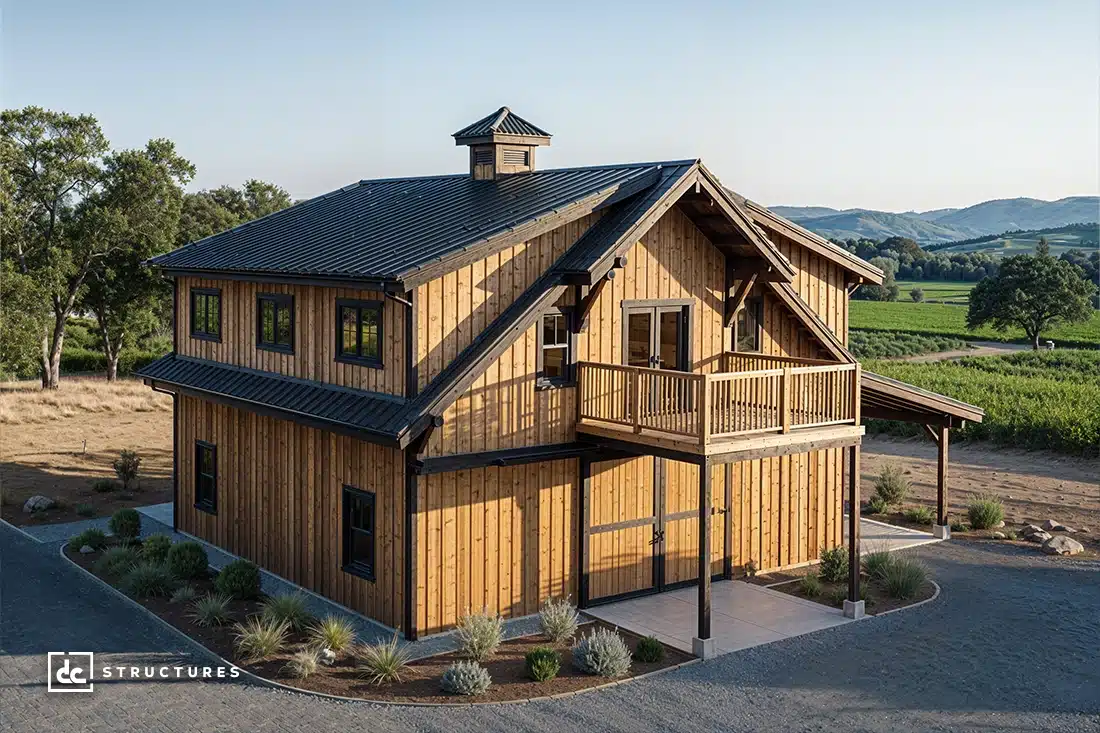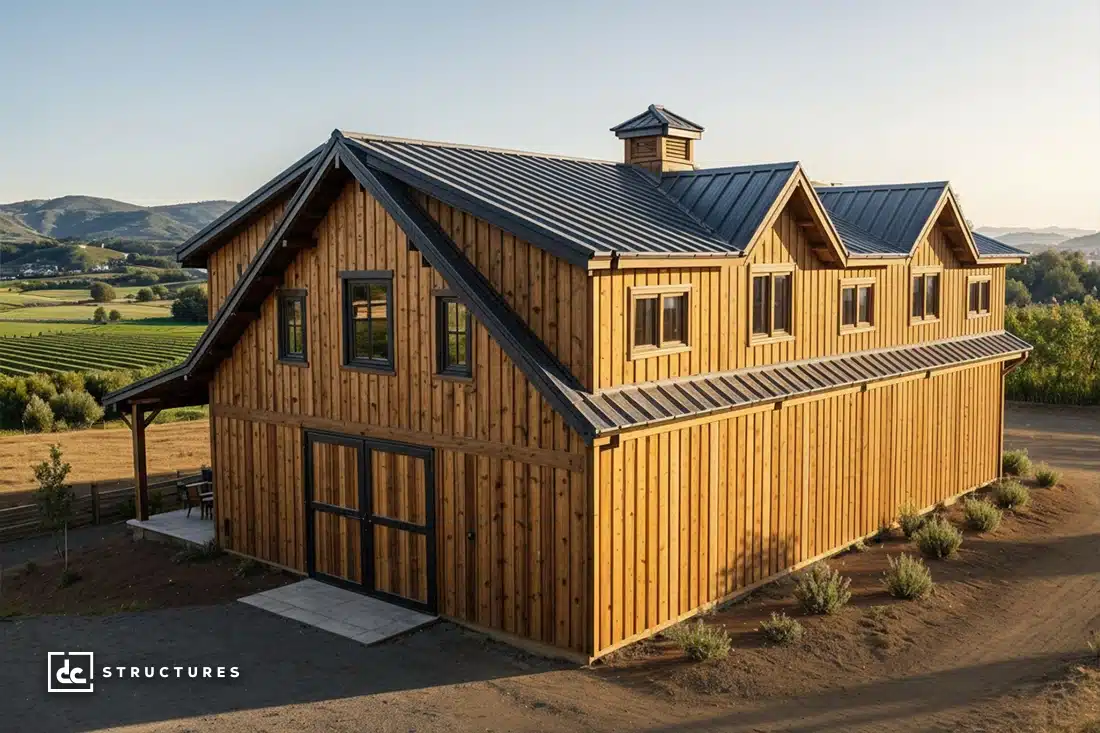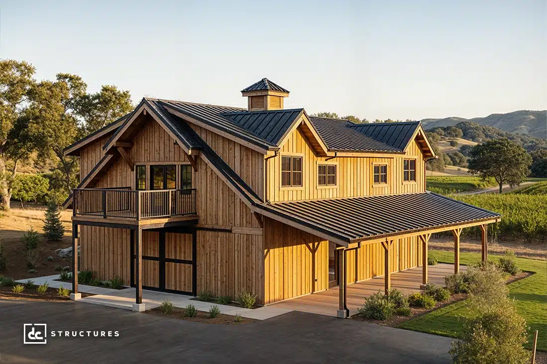 Our most popular barn with living quarters, the Oakridge is a customizable model that blends classic charm with modern functionality. Framed with high-grade Douglas fir timbers and glulam beams, this versatile two-story design works beautifully as a horse barn, a garage or workshop, or a home with vaulted living space above.