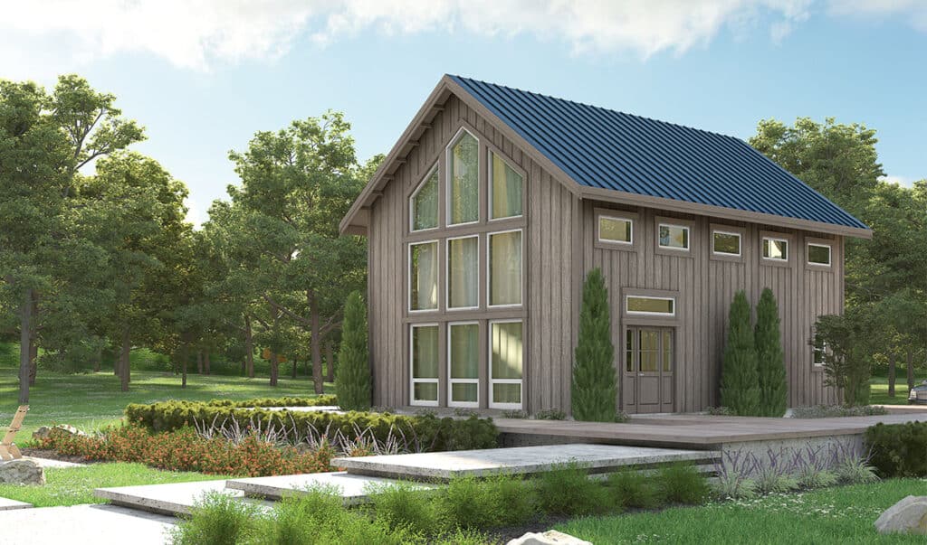 An attractive A-frame cabin design for your primary residence, vacation home, guest suite, or ADU project. Learn more about what you can do with our Wallowa A-Frame Cabin Kit.