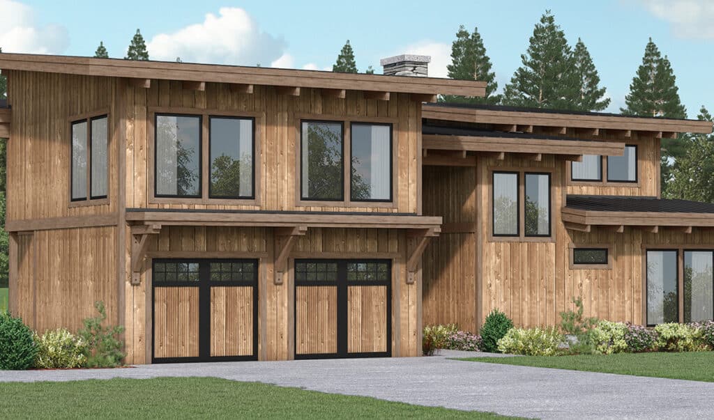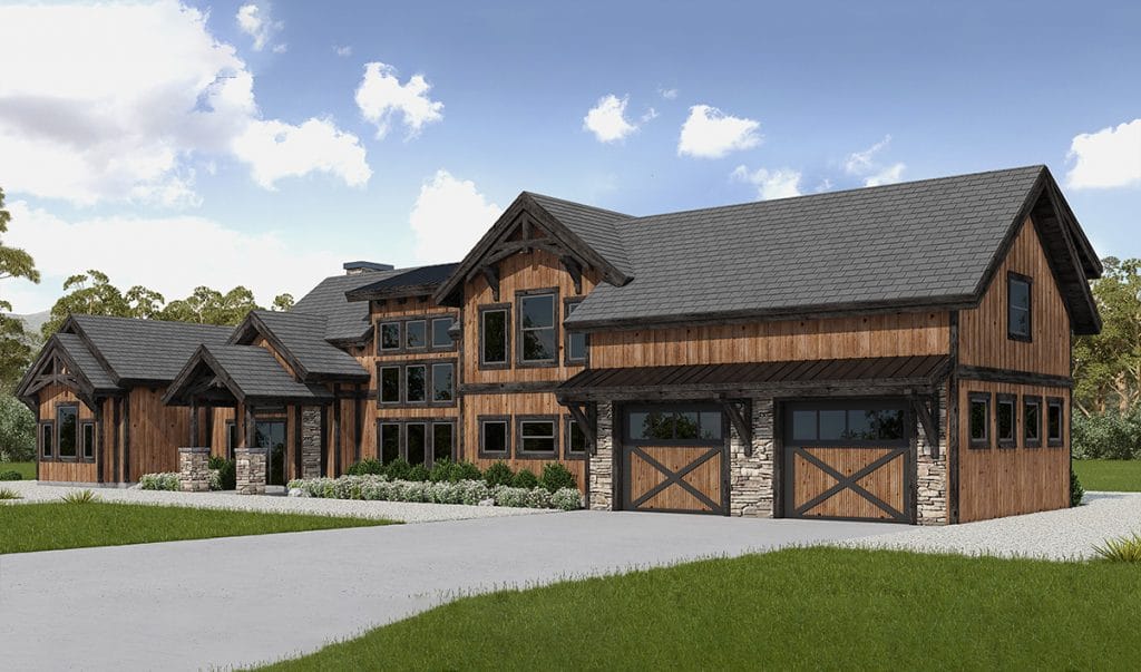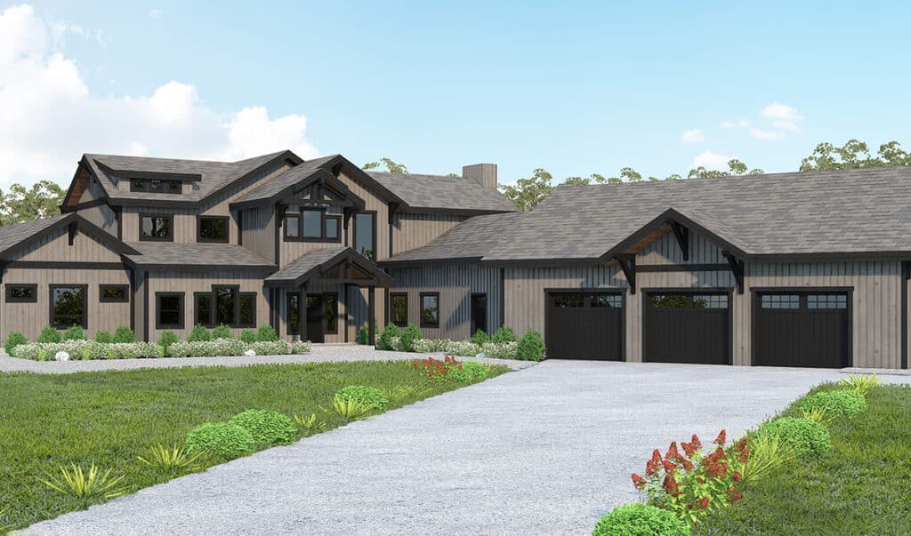 This rustic home design features a Craftsman-style exterior with traditional influences. With 3,677 sq. ft. of conditioned living space, plus a two-car garage, you can turn this kit into a family home, vacation rental, or anything else you see fit.