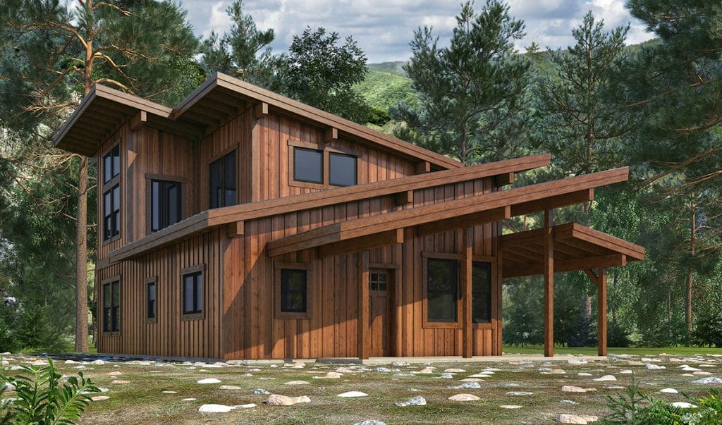 The Chinook is our largest cabin kit with a three-bedroom, two-bathroom floor plan perfect for a full-time home or vacation getaway.