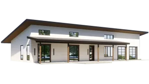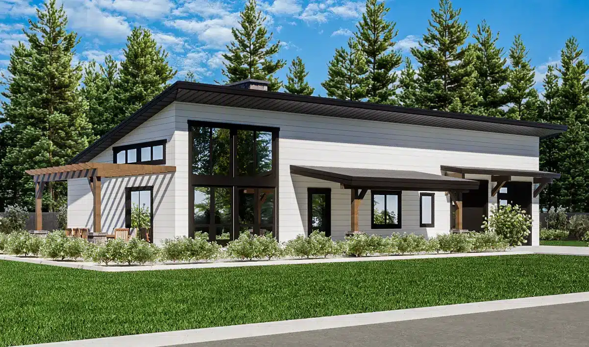 Designed with two bedrooms, two bathrooms, and a two-car garage, our Pocatello delivers a straightforward yet striking blueprint for a modern barndominium build.