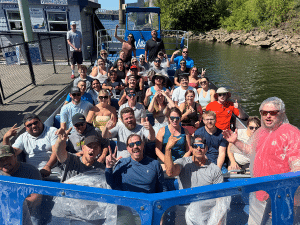 After lunch, much of the team headed off for a speed boat ride through Portland. Some were splashed, some were soaked, but all had an awesome time! That night we kept things a bit more relaxed with drinks and close-up magic at The Garden Tavern—that was until we all borrowed sports jerseys to snap a fun photo together!