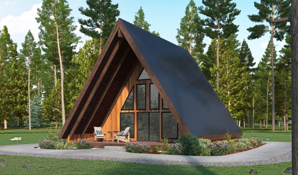 An attractive A-frame cabin design for your primary residence, vacation home, guest suite, or ADU project. Learn more about what you can do with our Wallowa A-Frame Cabin Kit.