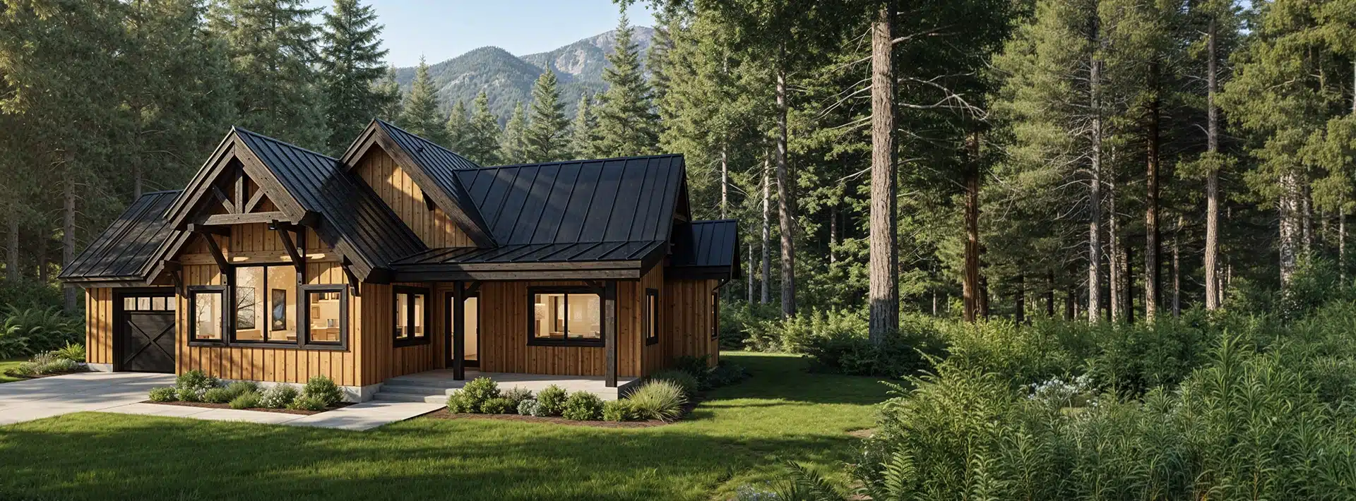 The Cottonwood is a compact three-bedroom, two-bathroom cabin that maximizes every square foot. Its open-concept living space flows to a covered porch, perfect for enjoying your morning coffee or hosting evening gatherings, while a 484 sq. ft. garage keeps vehicles and gear protected. Featuring sturdy timber rafters and a flexible interior, the Cottonwood is equally suited for a family home, guest retreat, or vacation rental.