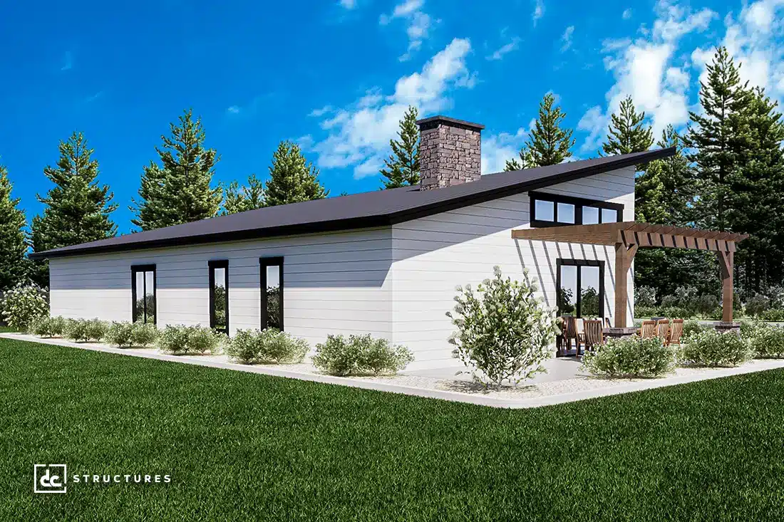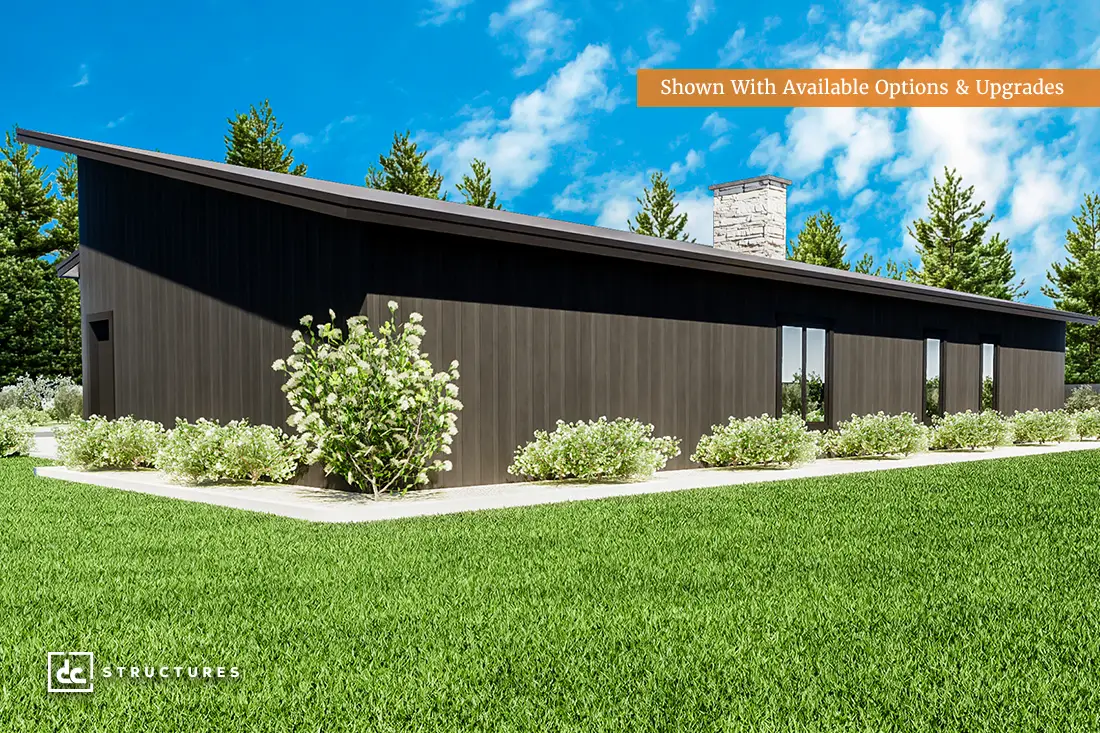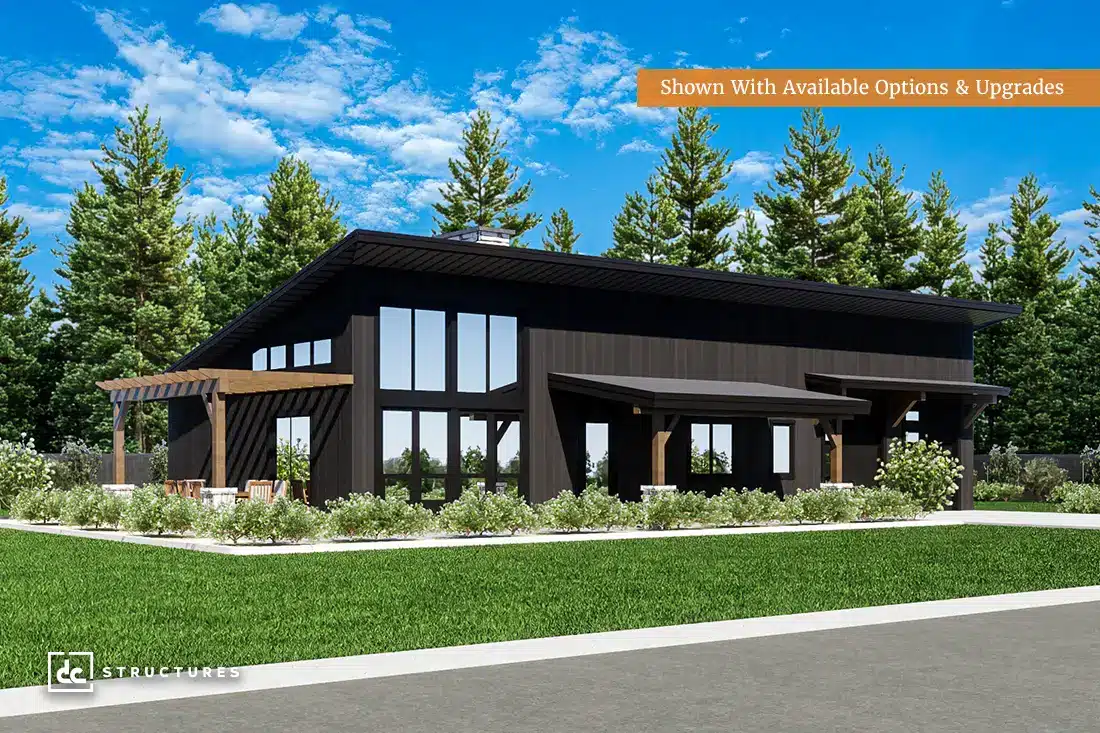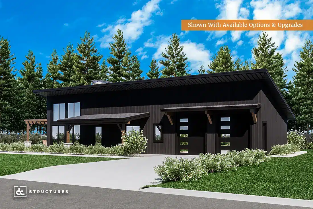 Named after the “Gateway to the Northwest,” the Pocatello Barndominium Kit combines regionally inspired design with nationwide appeal. With sleek sloped rooflines and modern exterior detailing, this barndominium offers a forward-thinking take on wood construction. Delivered as a pre-engineered building package, the Pocatello features the flexibility to fit your property, vision, and needs—complete with everything you and your builder need to assemble your frame quickly and confidently.