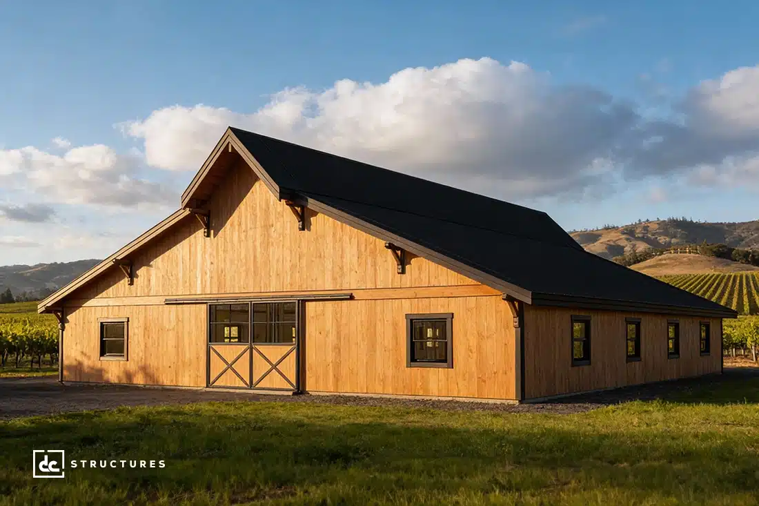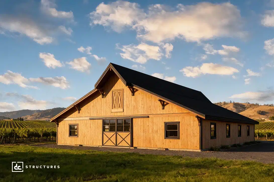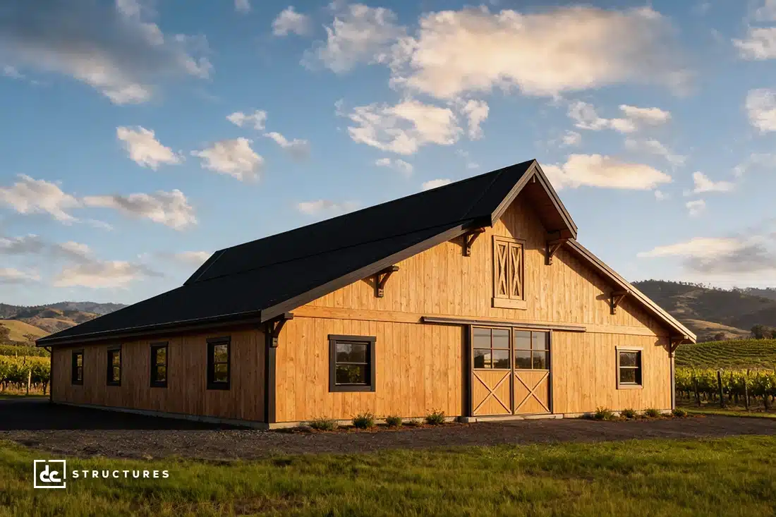 The Sunnyside is a versatile wedding and event venue with rustic elegance and robust capacity to seat over 120 guests. With a flexible floor plan, you can easily add a kitchen, restrooms, bridal quarters, or other amenities that bring your business vision to life. Crafted from premium Douglas fir posts and beams, the Sunnyside combines dramatic vaulted ceilings with a warm timber aesthetic, creating the perfect backdrop for celebrations of any kind.