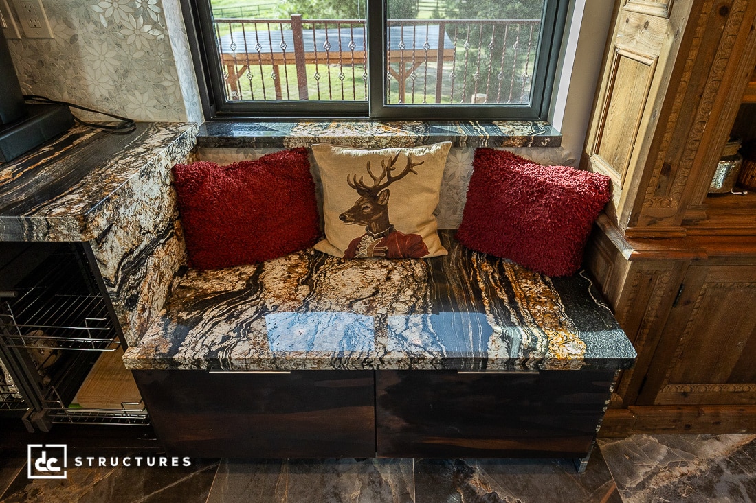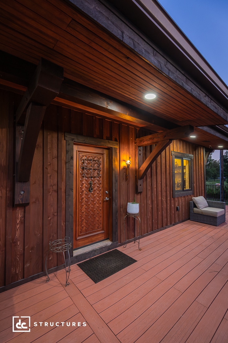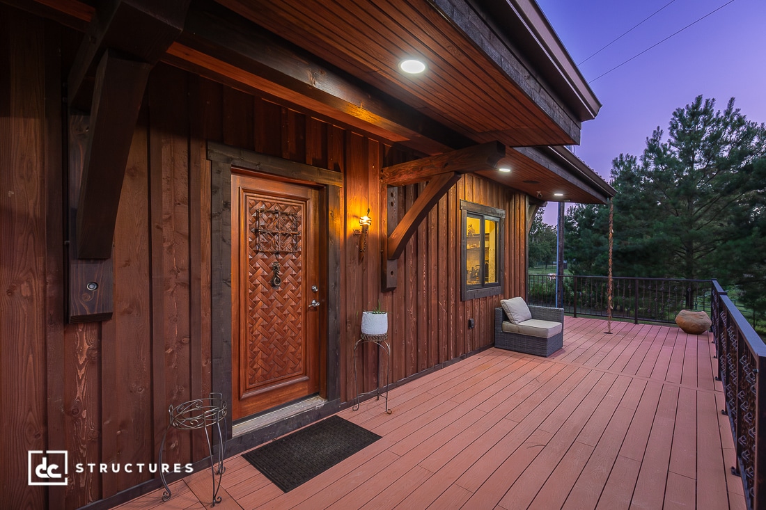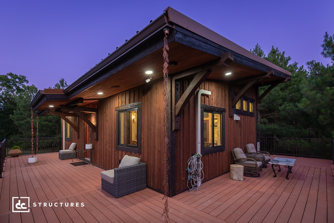 Like its sister structure, we designed this cabin with several upgrades to meet our client’s vision for a guest suite and ADU. We pre-stained the siding in a rich dark walnut finish and framed the exterior windows with dark bronze trim and hardware. Together with its richly appointed interior, these design upgrades help this cabin stand out as a one-of-a-kind retreat for family and friends alike.