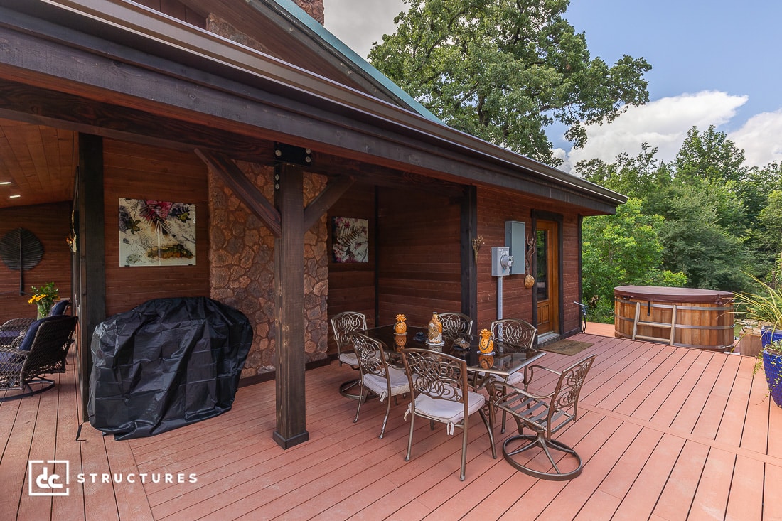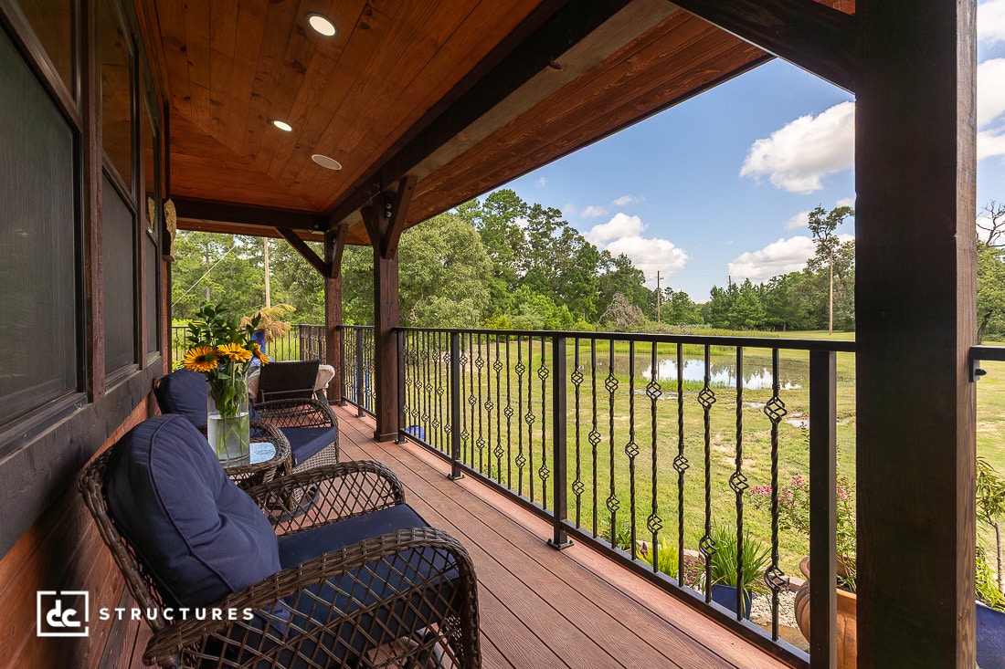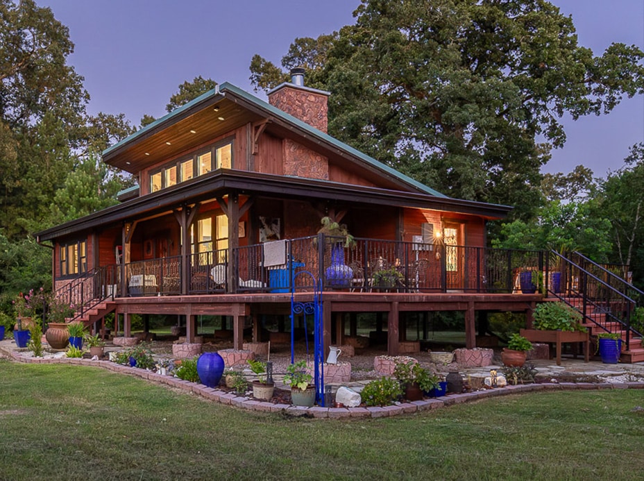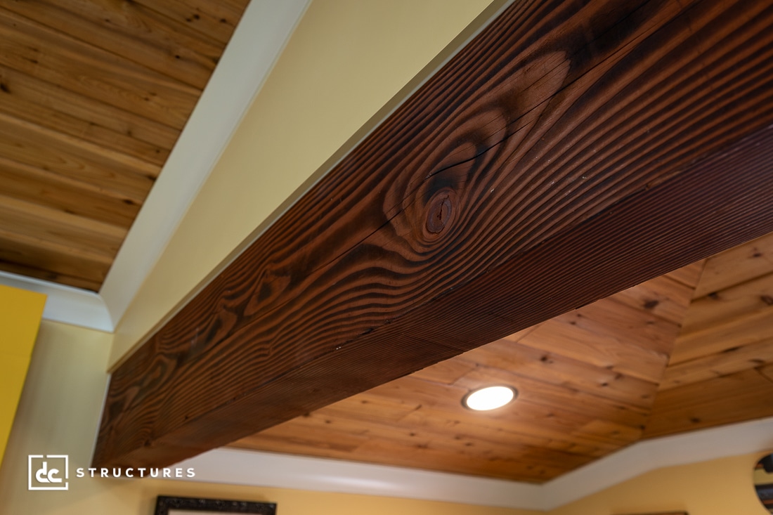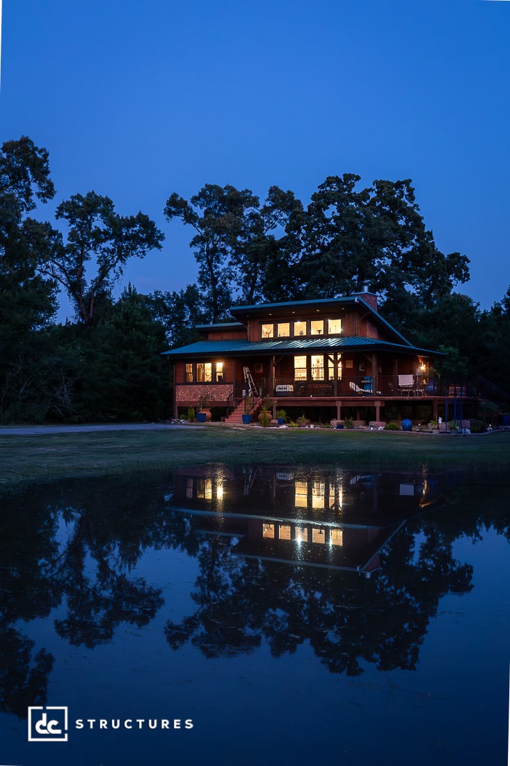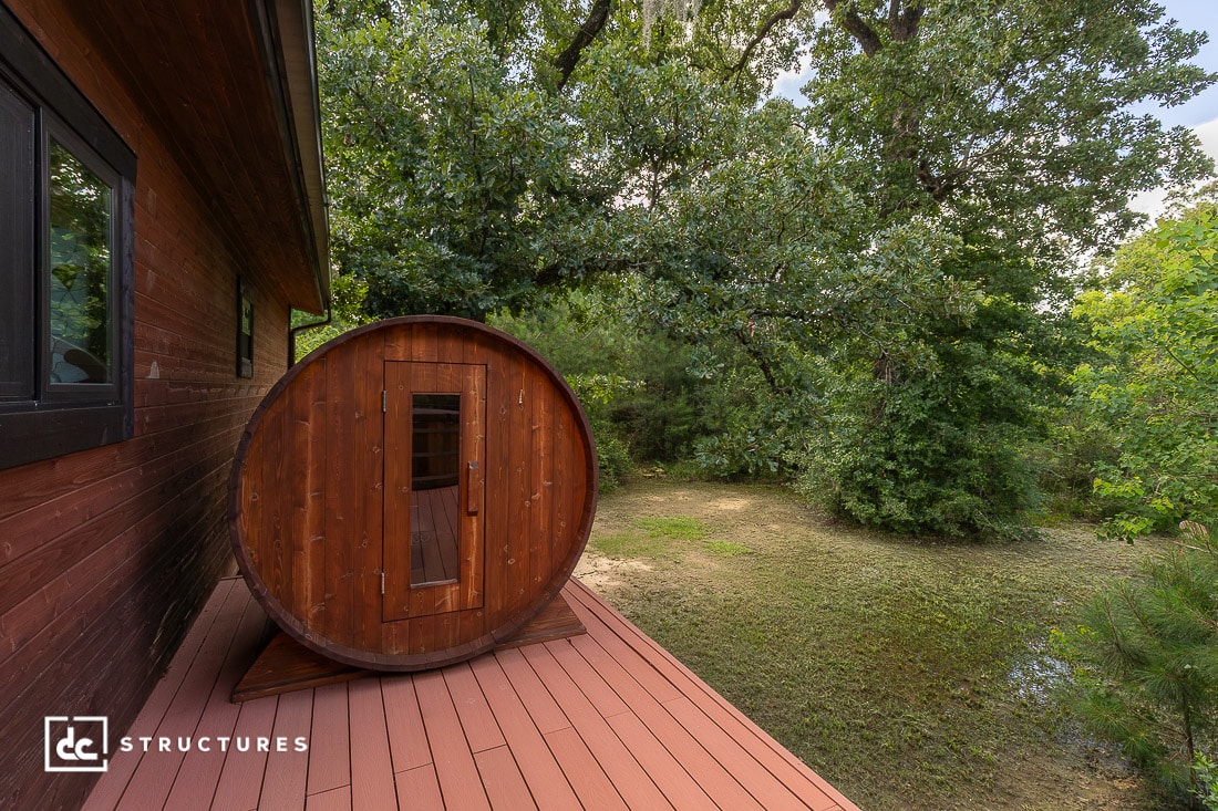 Modeled after our Modern Rogue Cabin Kit, this custom ADU in Magnolia, Texas, offers an interior unlike any other. One of three eclectic cabins on the property, this post and beam structure embraces the timeless appeal of a classic cabin on the outside—while delivering a bold, unexpected twist within.