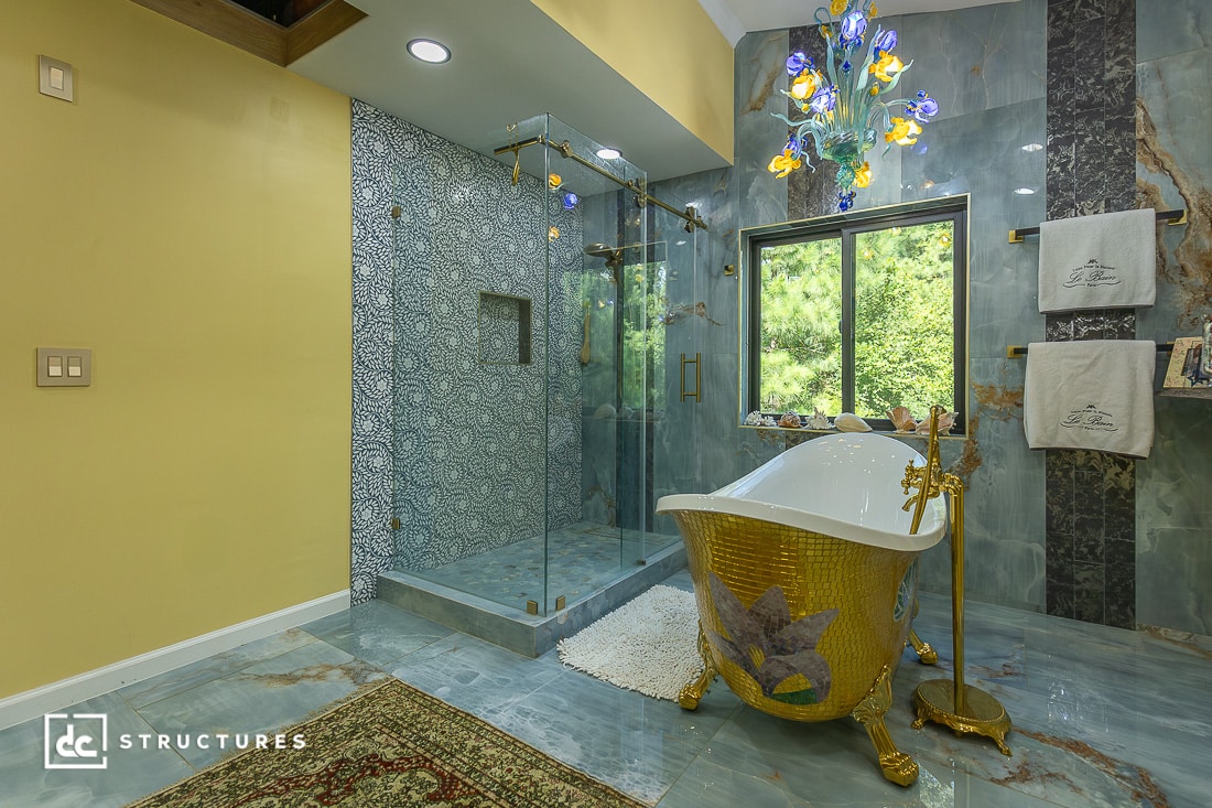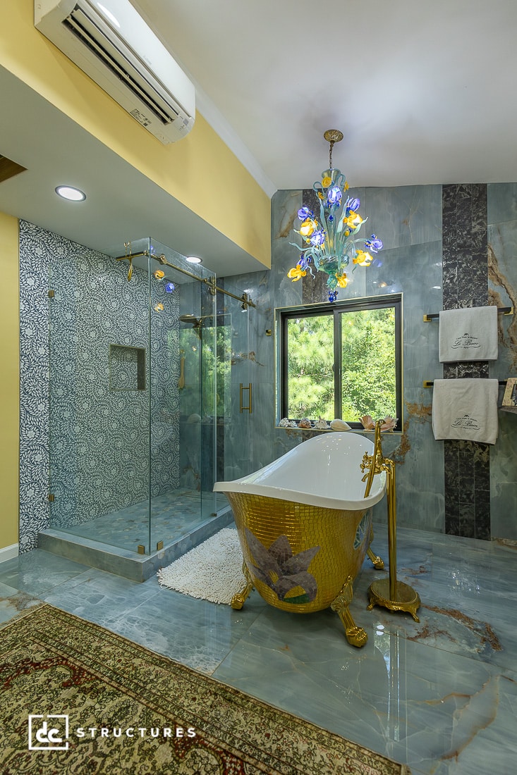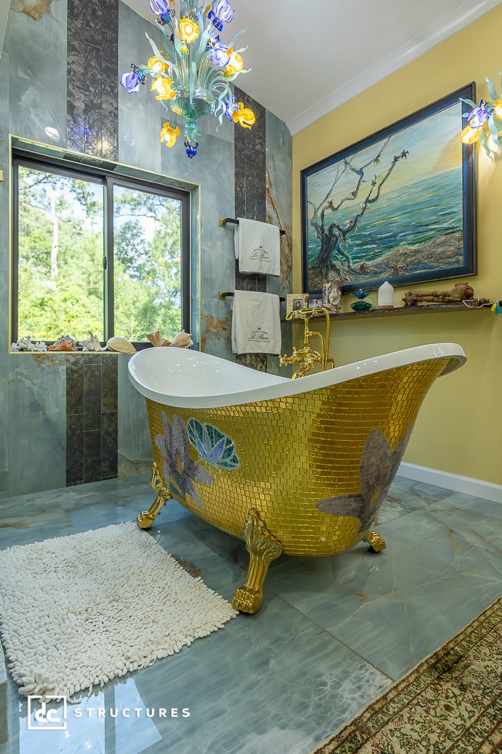 Step through the front door into a breathtaking living space with marble floors, ornate design details, and striking artwork throughout. Two luxurious bedrooms and bathrooms ensure a comfortable stay, including one standout bathroom with a gold-plated clawfoot tub and floral-inspired lighting—just a few of the many memorable touches that continue to thrill our clients and team alike.