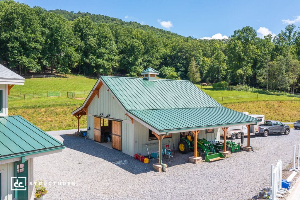 Our client kept their design close to our standard Columbia 36′ Gable Barn Kit, save for adding a 12′ x 36′ shed roof and Dutch doors and windows to their building. With 1,296 sq. ft. of adaptable interior space, this barn provides ample room for creative workshopping, vehicle and equipment storage, equestrian supplies, and more.
